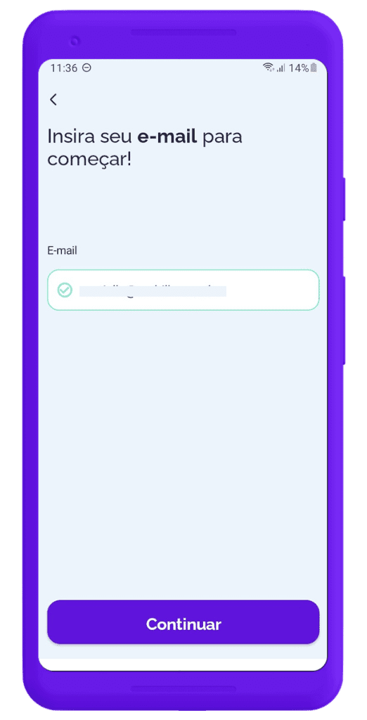 1. Para dar início ao cadastro, insira o seu e-mail no campo indicado;