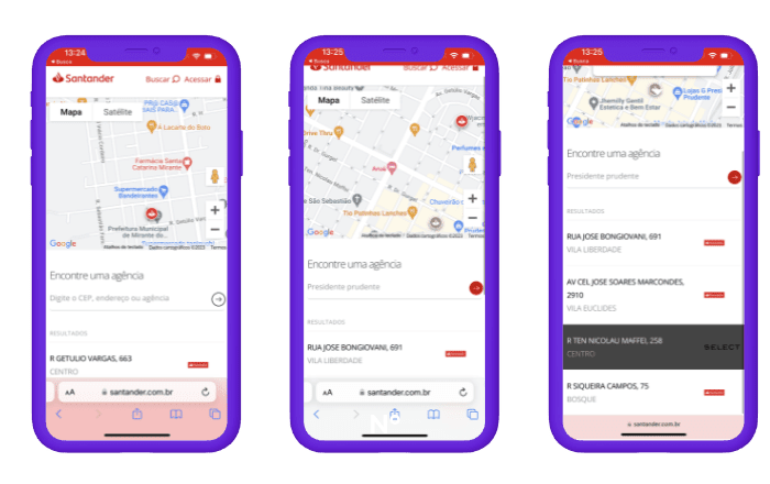 No entanto, é importante ressaltar que ainda nem todas as agências Santander Select estão cadastradas nesta página. Por isso, vale a pena pesquisar também no seu navegador de preferência.