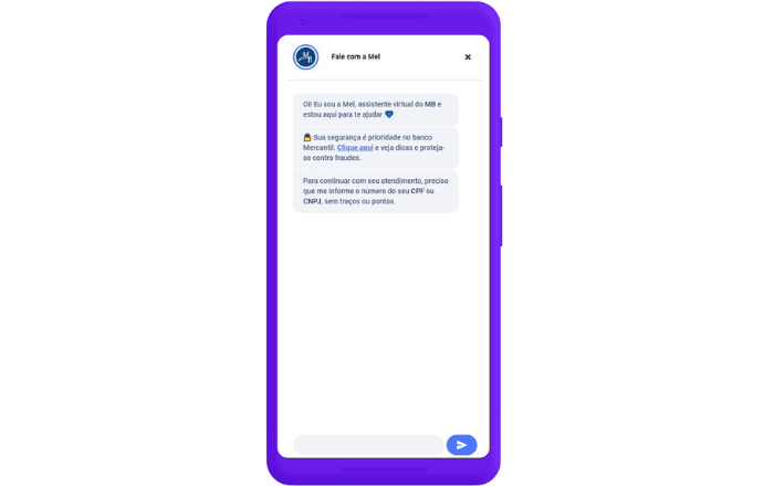 O Mercantil do Brasil também possui uma central de atendimento online via chat. Assim, fale com a Mel, assistente virtual do Banco e tire suas dúvidas: