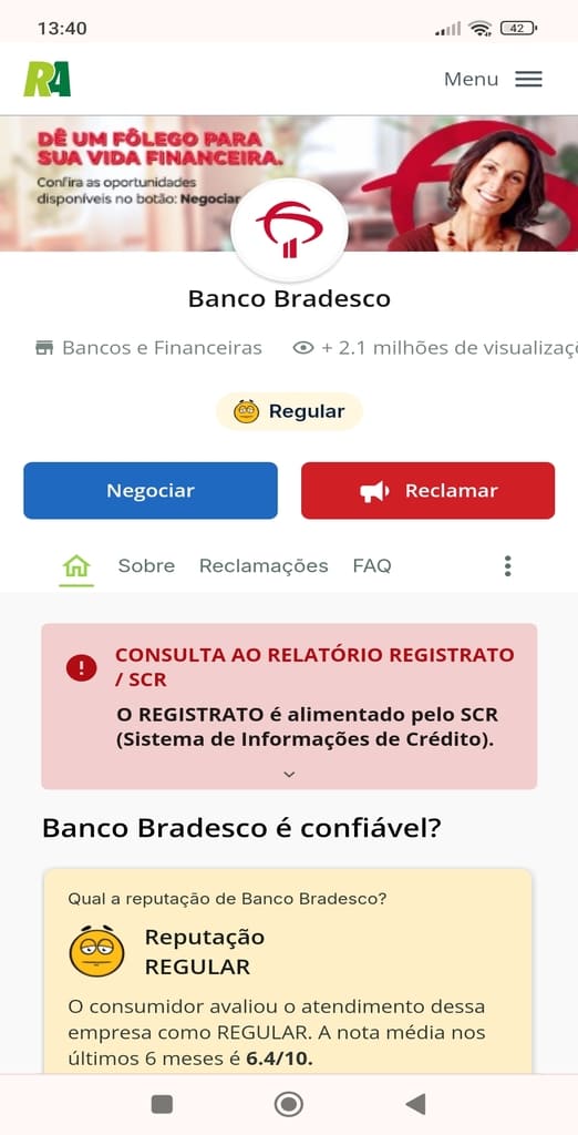 Qual é a reputação do Bradesco no Reclame Aqui?