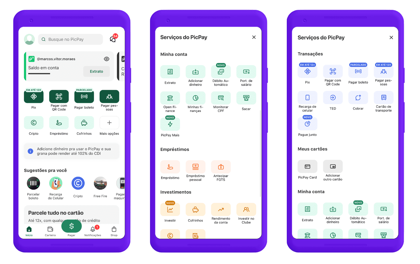 Já quando falamos do PicPay, percebemos que a principal característica está na possibilidade de fazer até R$ 100 mil render 102% do CDI.