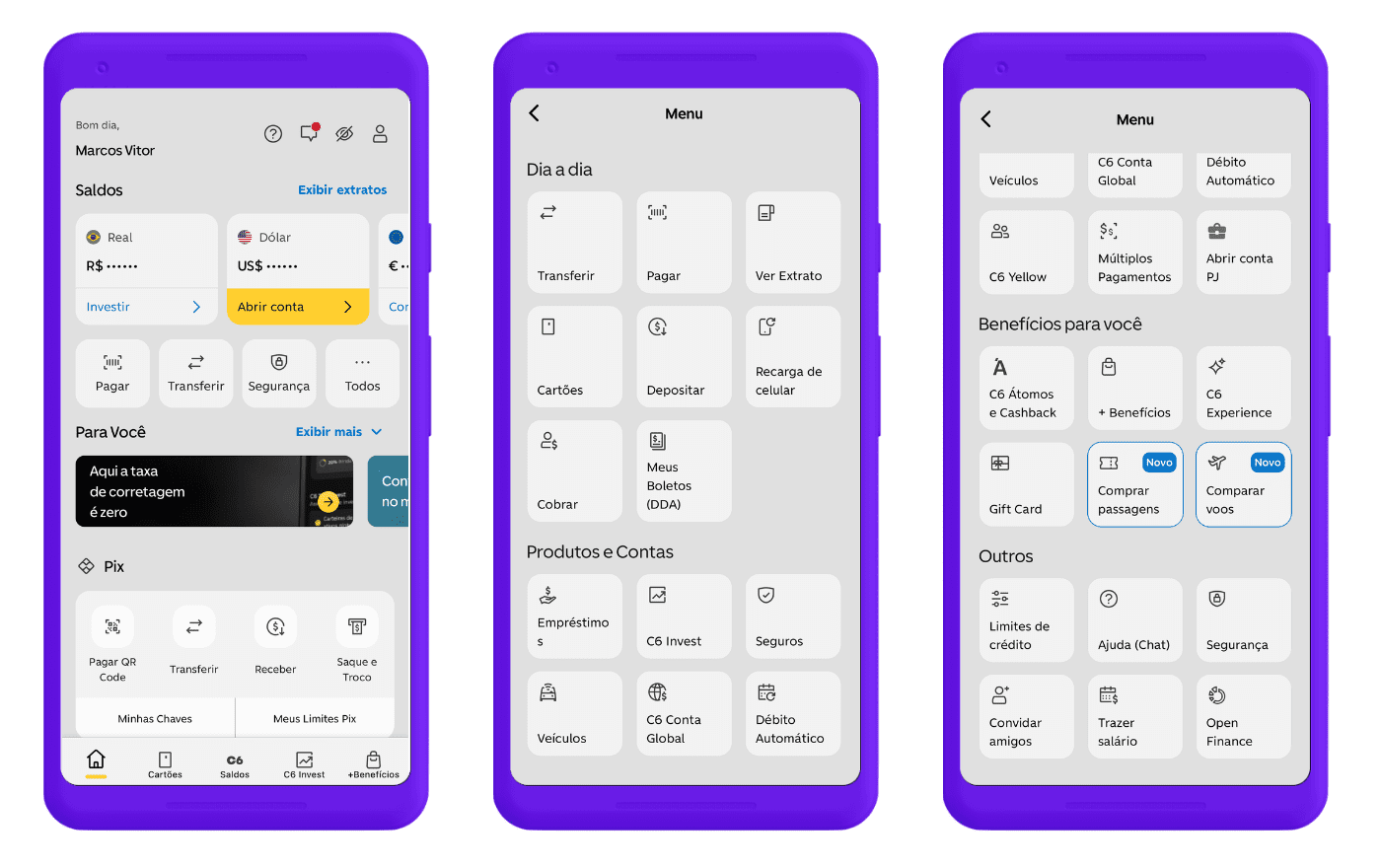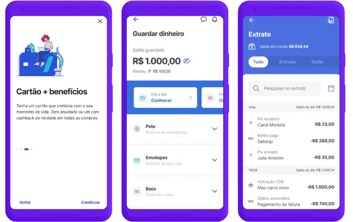 Em relação a movimentação do dinheiro, ele é feito de forma exclusiva por meio dos aplicativos, permitindo que você resolva tudo em poucos cliques.