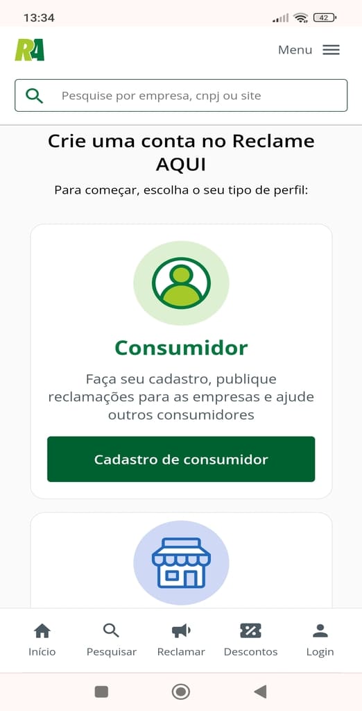 Primeiramente, crie um cadastro gratuito no Reclame Aqui para poder postar sua queixa ao Neon. Acesse a página: reclameaqui.com.br/cadastro.