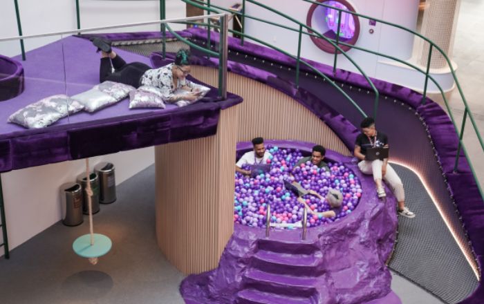 Para proporcionar um ambiente mais leve, a sede do Nubank possui vários espaços especiais para oferecer diversão aos mais de 7.000 funcionários que trabalham de forma híbrida ou presencial.