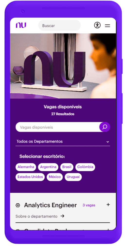 Você pode conhecer mais detalhes sobre as vagas e fazer a sua candidatura por meio da sessão de “trabalhe conosco” do Nubank.