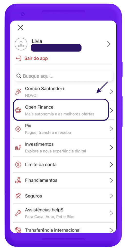 Veja a seguir o passo a passo para utilizar o Open Finance no app Santander:
