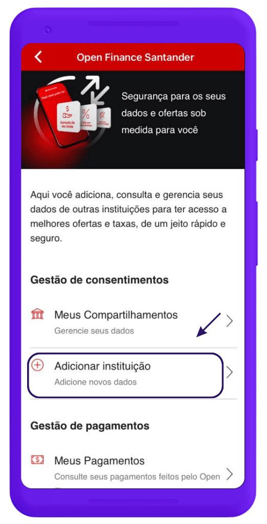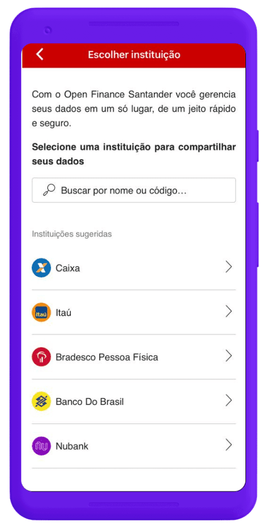 Para isso, basta utilizar um dos canais digitais da empresa, como o app Santander (disponível para Android e iOS), internet banking ou o portal Santander e autorizar o compartilhamento dos seus dados.