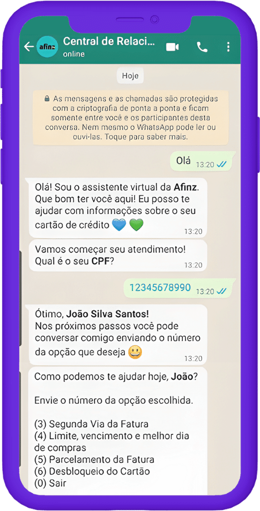 2. Pedir a Fatura Afinz pelo Whatsapp