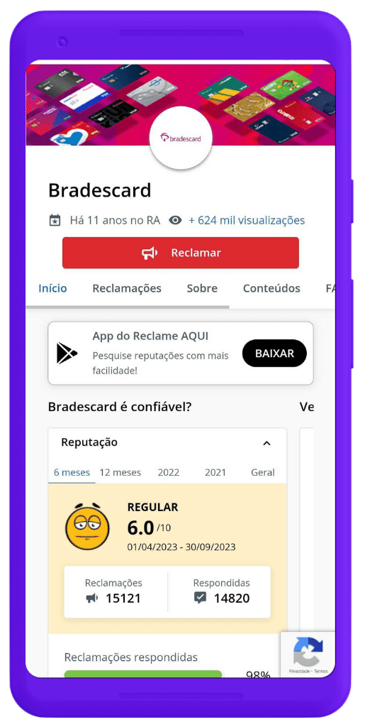 Utilize o site Reclame Aqui como uma forma de expor sua insatisfação com a Bradescard ou seu cartão C&A.