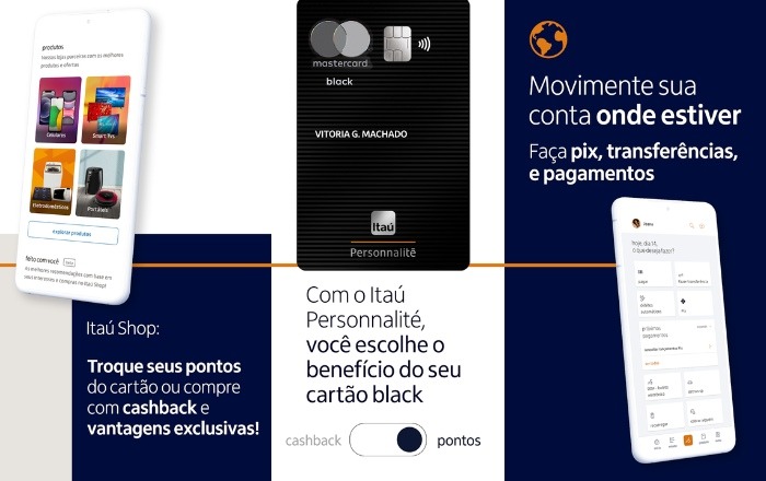 Assim, é possível ter um cartão Itaú Personnalité Black com gestão por aplicativo próprio, descontos e experiências exclusivas nos parceiros, investimentos e muito mais!