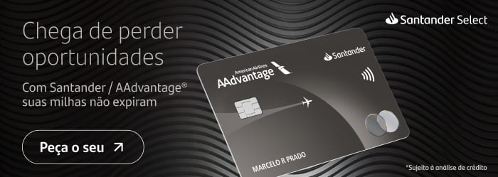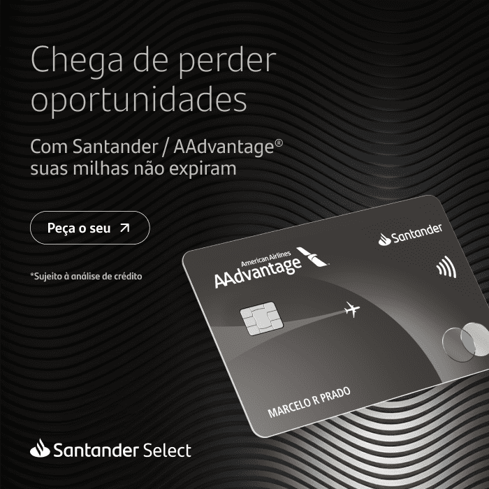 Milhas que nunca expiram: desde que utilize o cartão na função crédito ao menos uma vez a cada 24 meses. - Loyalty Points Além de acumular milhas utilizando o cartão, você também ganha Loyalty Points para conquistar status no programa AAdvantage® da American Airlines e ter acesso a mais benefícios de viagens, saiba mais em: www.santander.com.br/e/newaadvantage