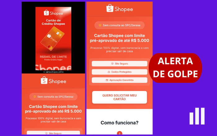 Um novo golpe do cartão de crédito está rodando na internet: o cartão Shopee com limite de R$ 5 mil para pessoas negativadas.