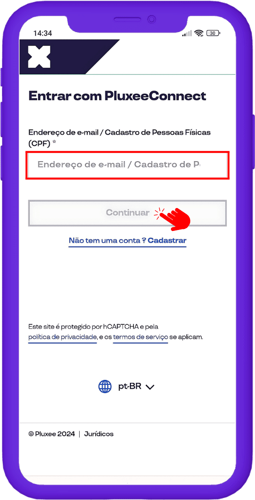 4. Se você possui cadastro, informe o e-mail ou CPF e clique em “Continuar