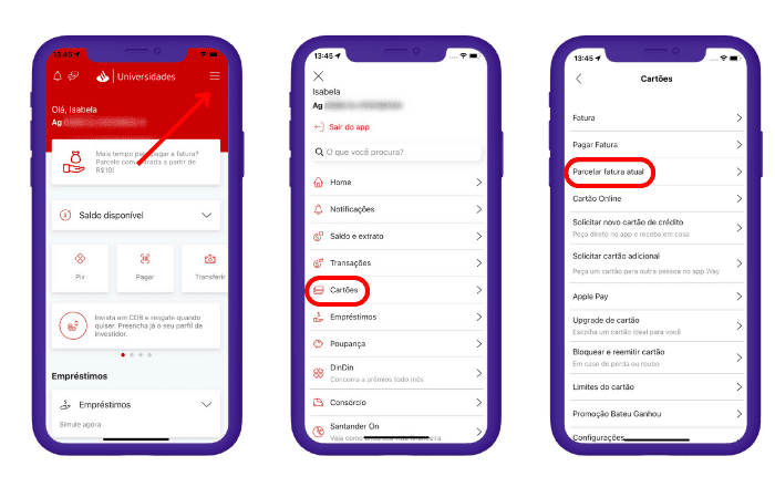 Tendo esses requisitos, para parcelar a fatura Santander pelo app do banco, faça o seguinte: