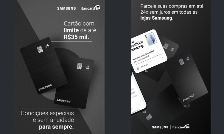 O cartão Samsung é um produto financeiro gerenciado pelo banco Itaú em parceria com a loja Samsung e emitido na bandeira internacional Visa Platinum.