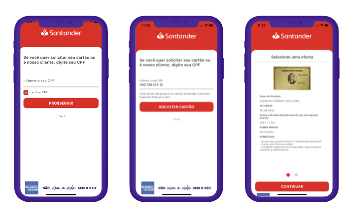 Para pedir o cartão Santander Amex pelo app, o procedimento é basicamente o mesmo que no site. Sendo assim, é necessário seguir o passo a passo:
