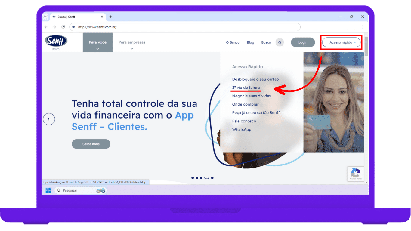 - Somente acesse a segunda via da fatura Senff pelos canais oficiais do emissor (site, app e telefone).