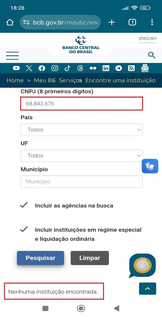 Veja o resultado: “Nenhuma instituição encontrada“.