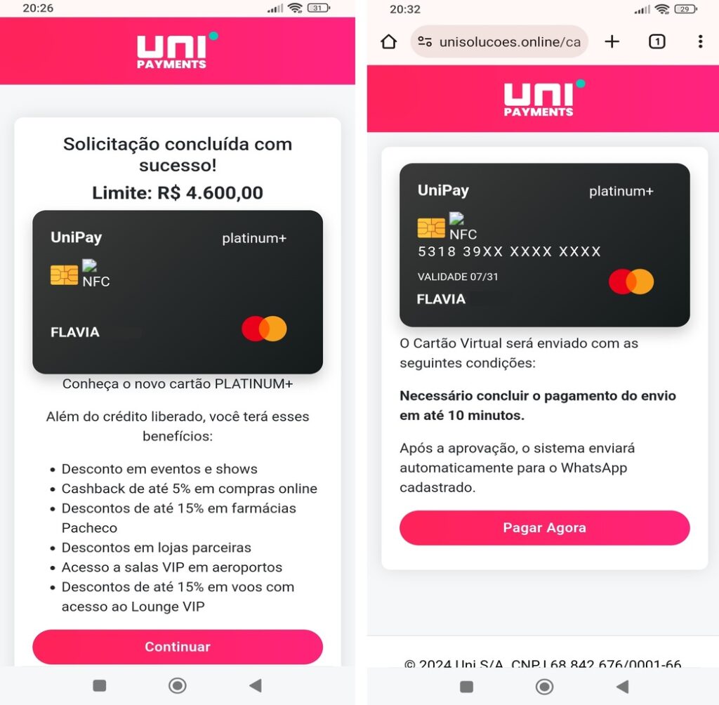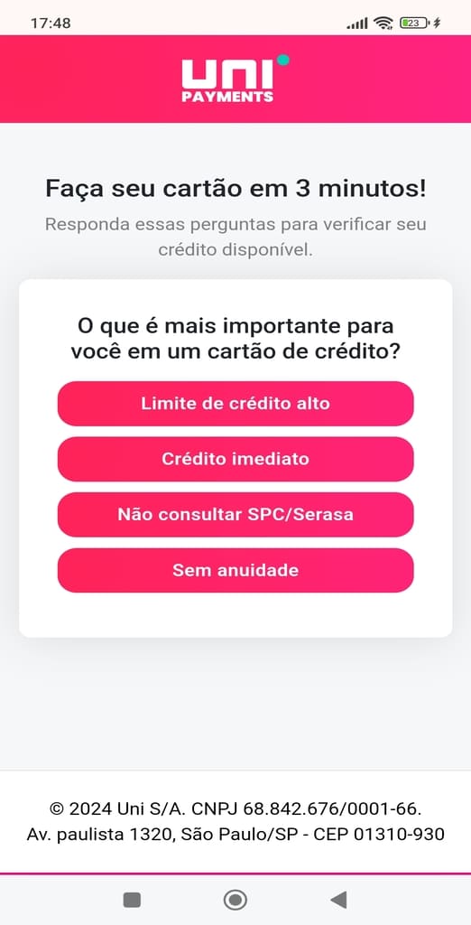 Este é mais um indicativo de que há informações inconsistentes sobre instituição do cartão Unipay.