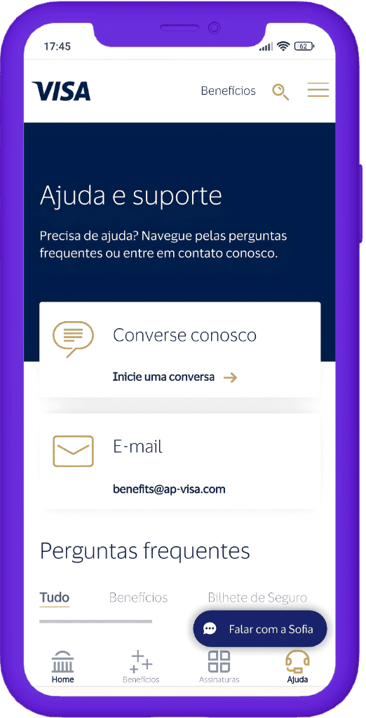 Ajuda e Suporte Online Visa
