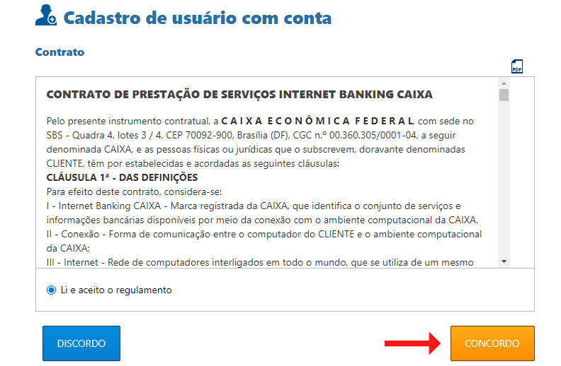 2. Na próxima página, leia todo o contrato e clique em “Concordo“;