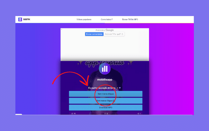 Estamos falando de aplicações como o SSSTikTok, que permite que você salve os seus vídeos com ou sem marca d’água, em formatos como MP4 ou MP3.