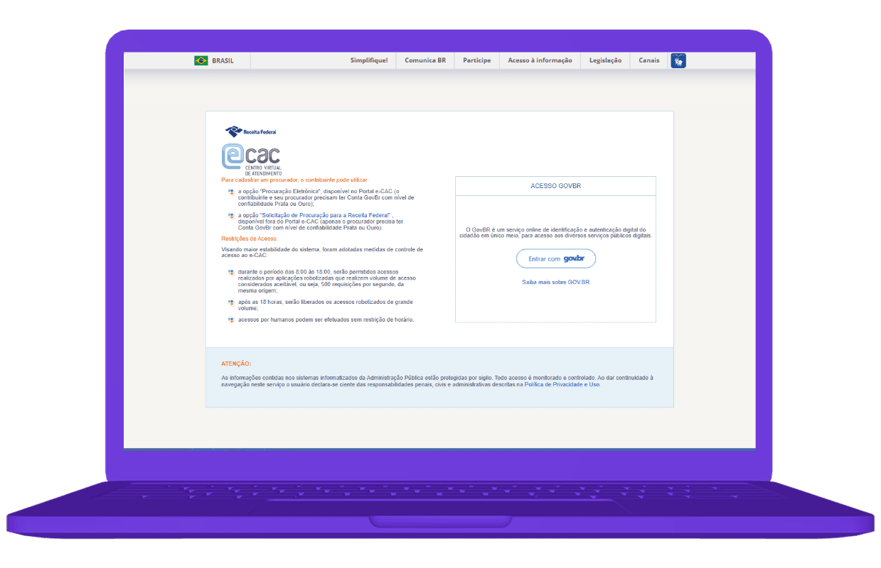 - No site oficial do Portal e-CAC, entre com a sua conta gov.br;
