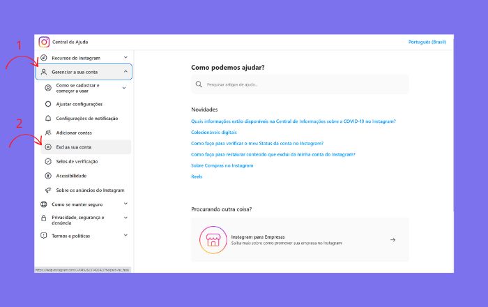 Como excluir a conta do Instagram?