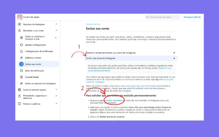 Se sua conta está desativada, mas agora você quer ir além e excluir a sua conta do Instagram, é preciso seguir o passo a passo abaixo: