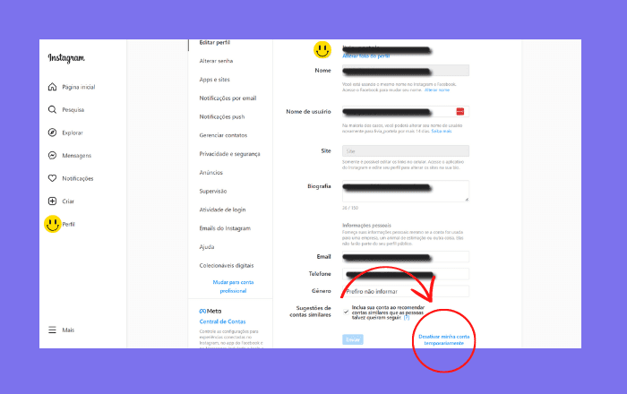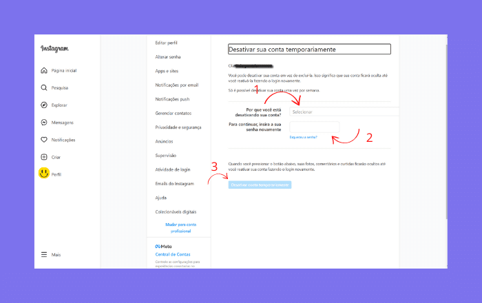 Como desativar a conta do Instagram temporariamente?