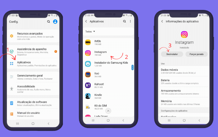 Para que possa realizar a desinstalação do aplicativo, basta ir até os seus aplicativos instalados e selecionar o Instagram. Depois disso, será possível escolher a desinstalar a rede social, e retirá-la do seu celular.