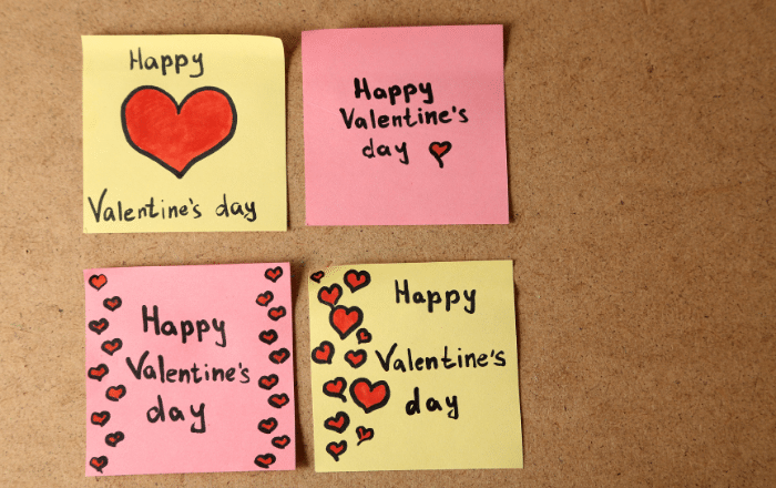 Tudo o que você precisa é de um bloquinho de post its e escrever várias frases. Os bilhetes podem ser com frases prontas, frases que o casal usa, apelidos, datas marcantes e muito mais.