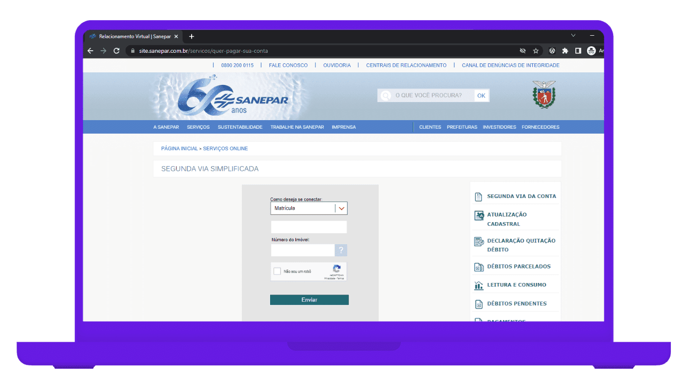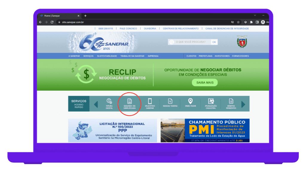 Para utilizar o site da Sanepar e tirar a segunda via, basta fazer o seguinte passo a passo: