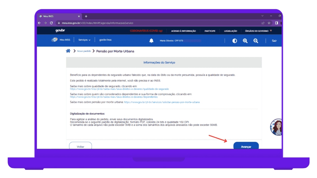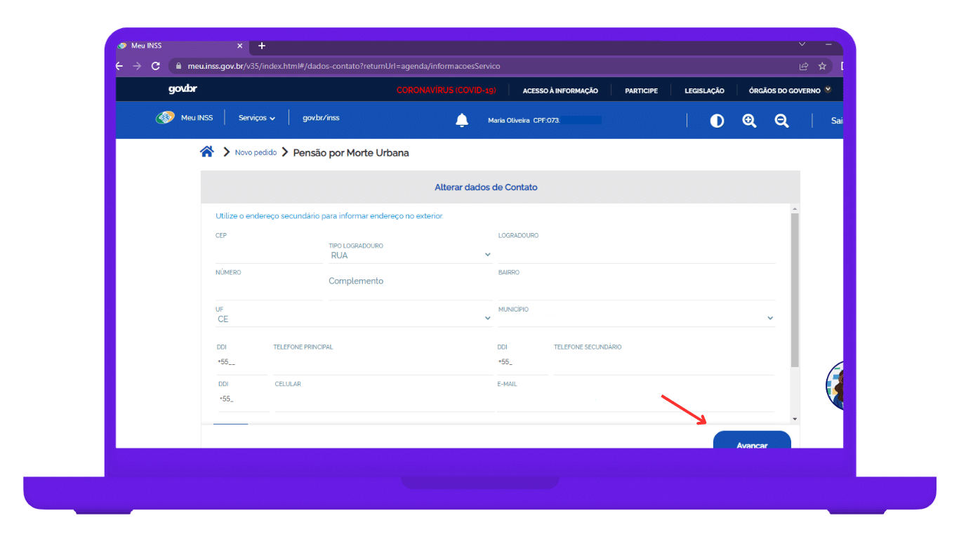 Por fim, no posto de viúva que tem direito à aposentadoria do marido falecido, basta preencher os dados pedidos para a conclusão do pedido e enviar os documentos no formato necessário, conforme indicado no site.