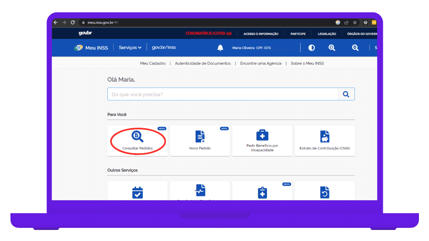 Para consultar o processo do INSS pelo CPF, basta acessar o Portal Meu INSS (computador ou celular) e entrar com a conta gov.br.