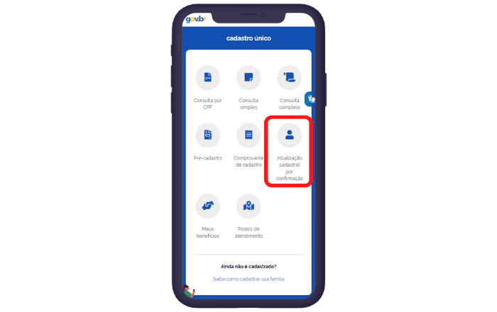 Ao abrir a página inicial do Meu CadÚnico no site ou no app, procure pela opção “Atualização Cadastral por Confirmação” e acesse com sua conta gov.br.