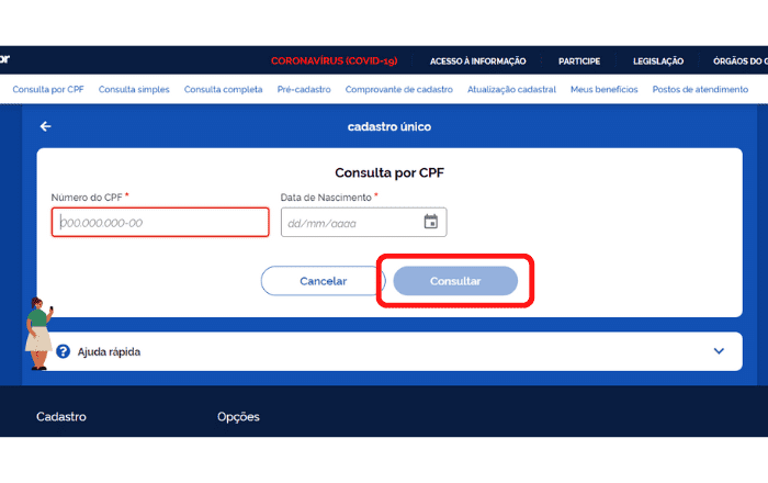 Se você quer consultar Meu CadÚnico, basta ir até o site oficial, selecionar a opção “Consulta por CPF” e digitar seu CPF e data de nascimento.