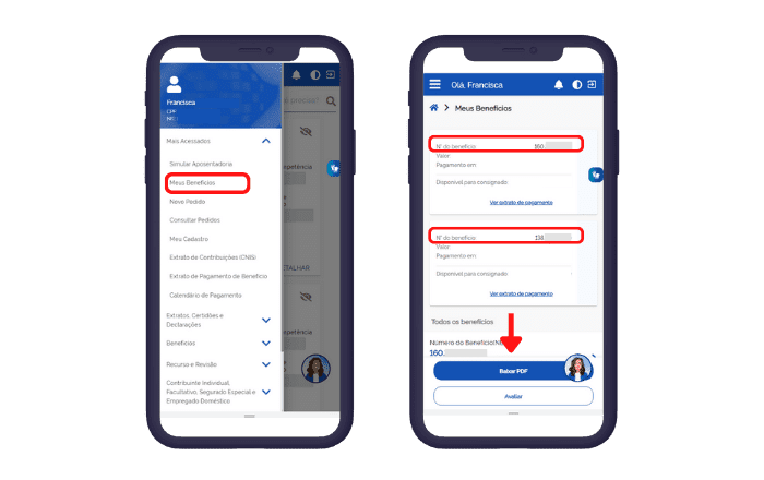 Basta entrar no site Meu INSS, inserir seu CPF e sua senha cadastrado e ir em “Meus Benefícios”. Caso não possua conta, basta cadastrar-se ou entrar pela conta gov.br.