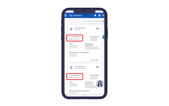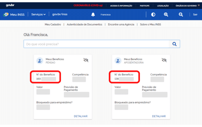 5. Ao entrar, você poderá consultar o número do benefício do INSS dependendo da quantidade de benefícios que você possuir.