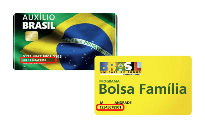 Se você possui o cartão Bolsa Família ou o cartão do Auxílio Brasil, basta ver o número de 11 dígitos que está bem na frente do cartão – como mostra a imagem abaixo.