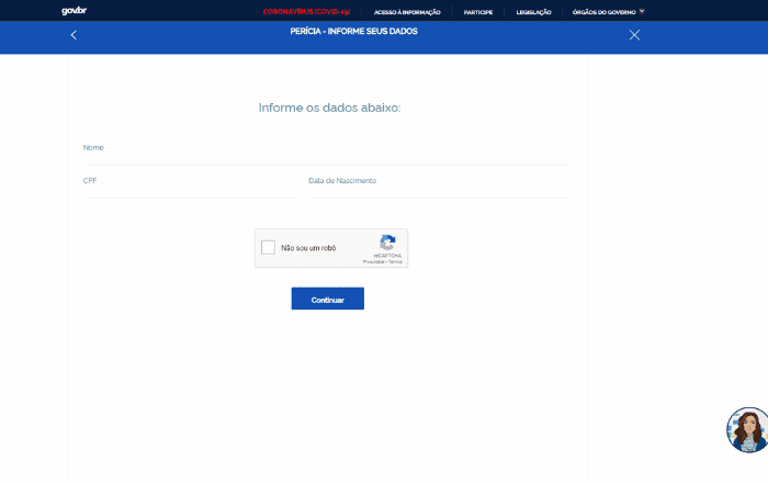 2. Na página seguinte, informe os seus dados, marque o campo “não sou um robô” e clique em continuar;