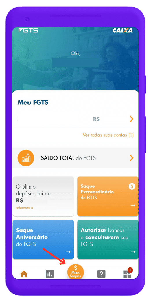 1. No seu aplicativo FGTS, faça login com o CPF e a senha cadastrados;