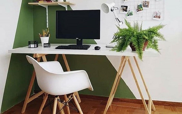 A pintura geométrica é uma forma moderna e acessível de transformar a decoração do home office.