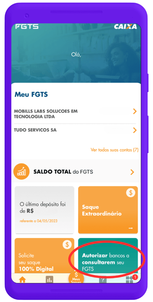 Você vai precisar acessar o FGTS para que a Caixa entenda você liberou a consulta ao seu saldo, permitindo que os bancos façam a consulta para saber quanto você tem de limite.