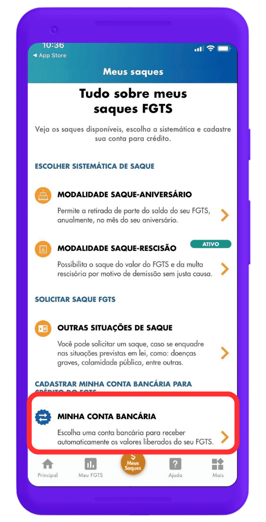 Altere onde receber o FGTS em “Minha conta bancária”!