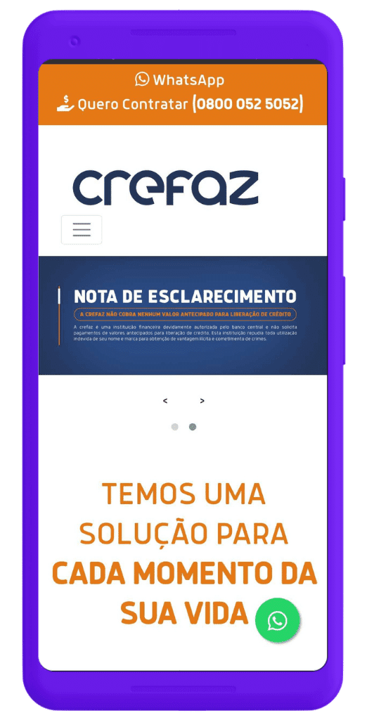 - Acesse o site oficial da Crefaz da empresa (site.crefaz.com.br);