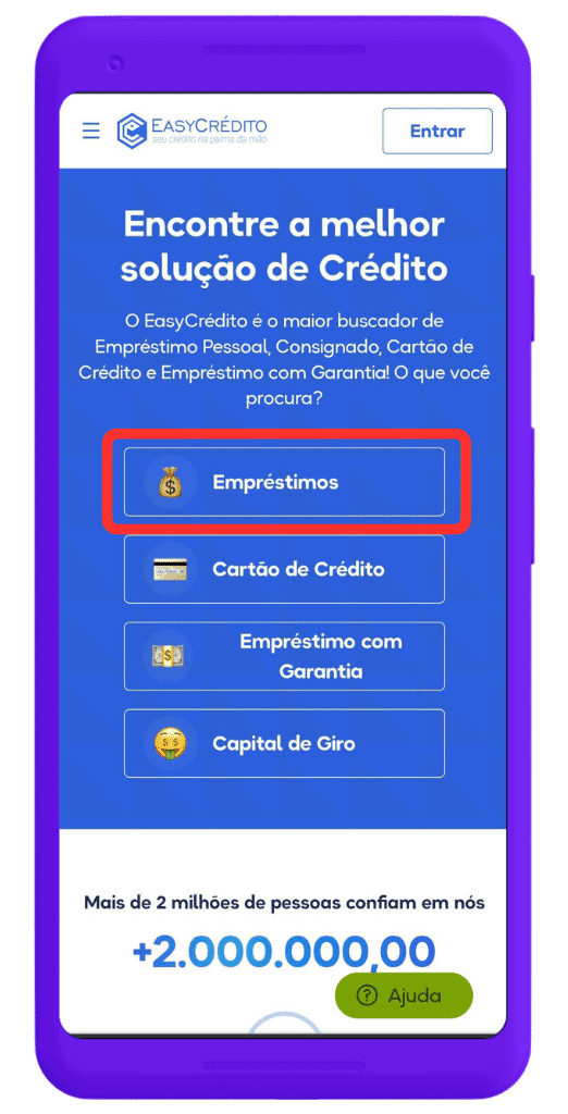 Selecione a opção “Empréstimos” na tela inicial do EasyCrédito!