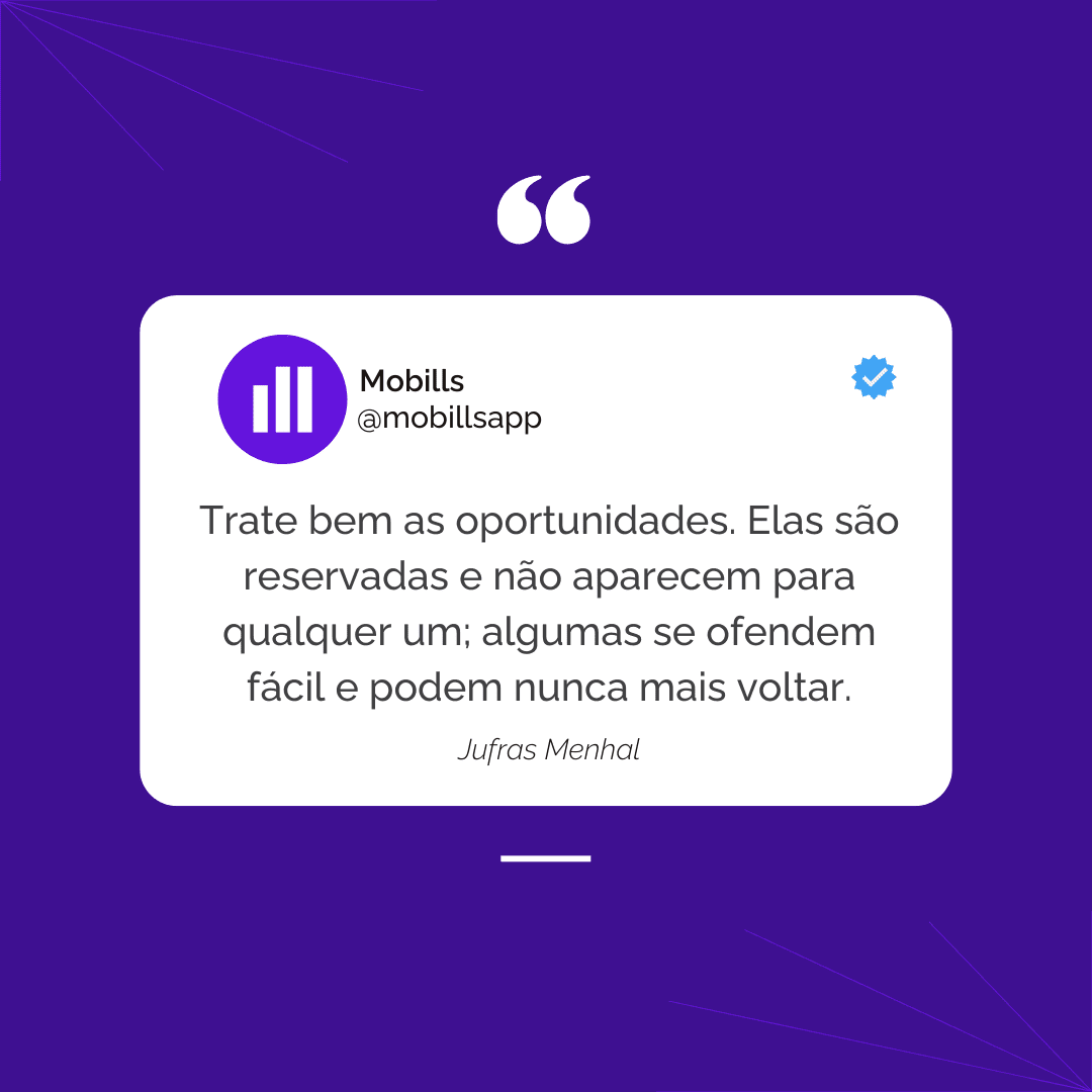 Trate bem as oportunidades. Elas são reservadas e não aparecem pra qualquer um; algumas se ofendem fácil e podem nunca mais voltar.
