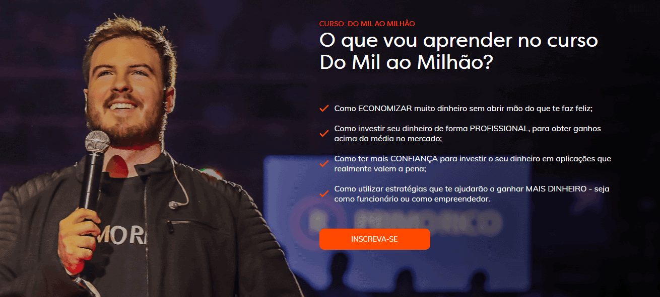 “É você que trabalha pelo dinheiro, ou é ele que trabalha para você?”. Esse é o questionamento feito pelo curso do Mil ao Milhão, ministrado por Thiago Nigro, criador do O Primo Rico.