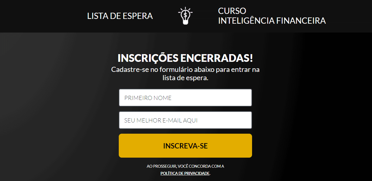 Caso queira entrar na fila de espera para a próxima turma, você pode se inscrever no site. O investimento era de R$ 2.418.